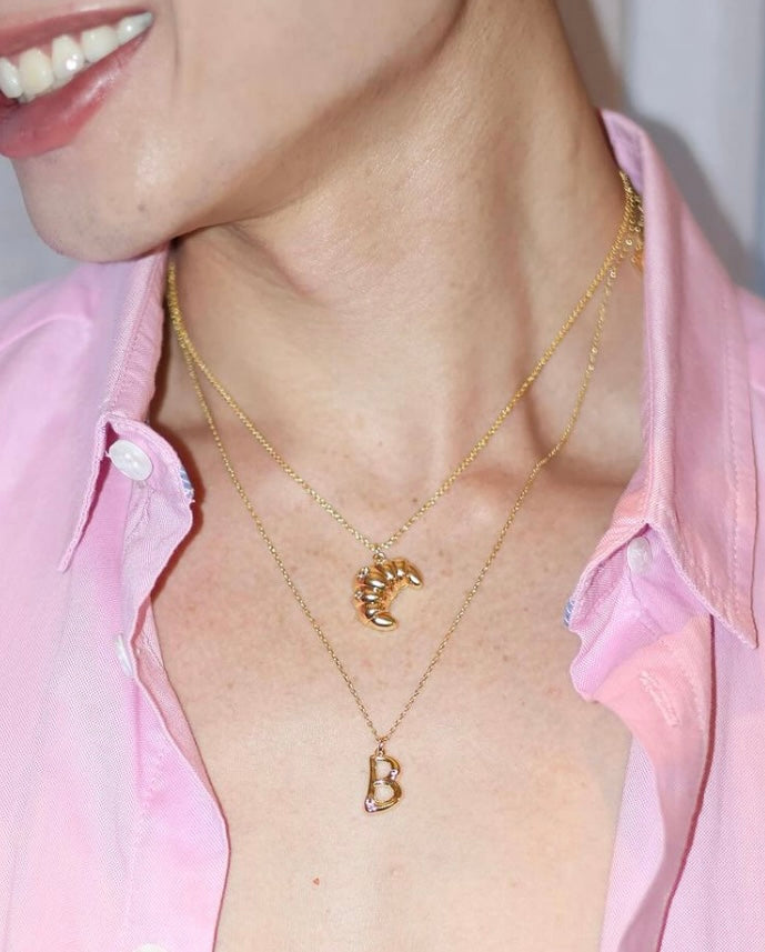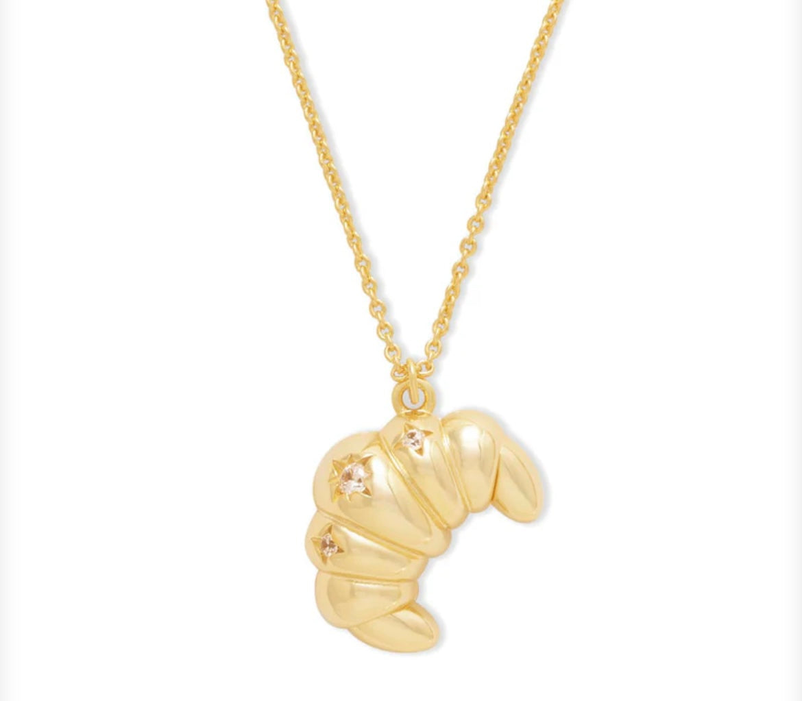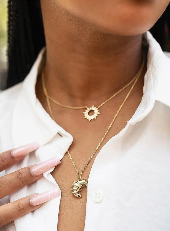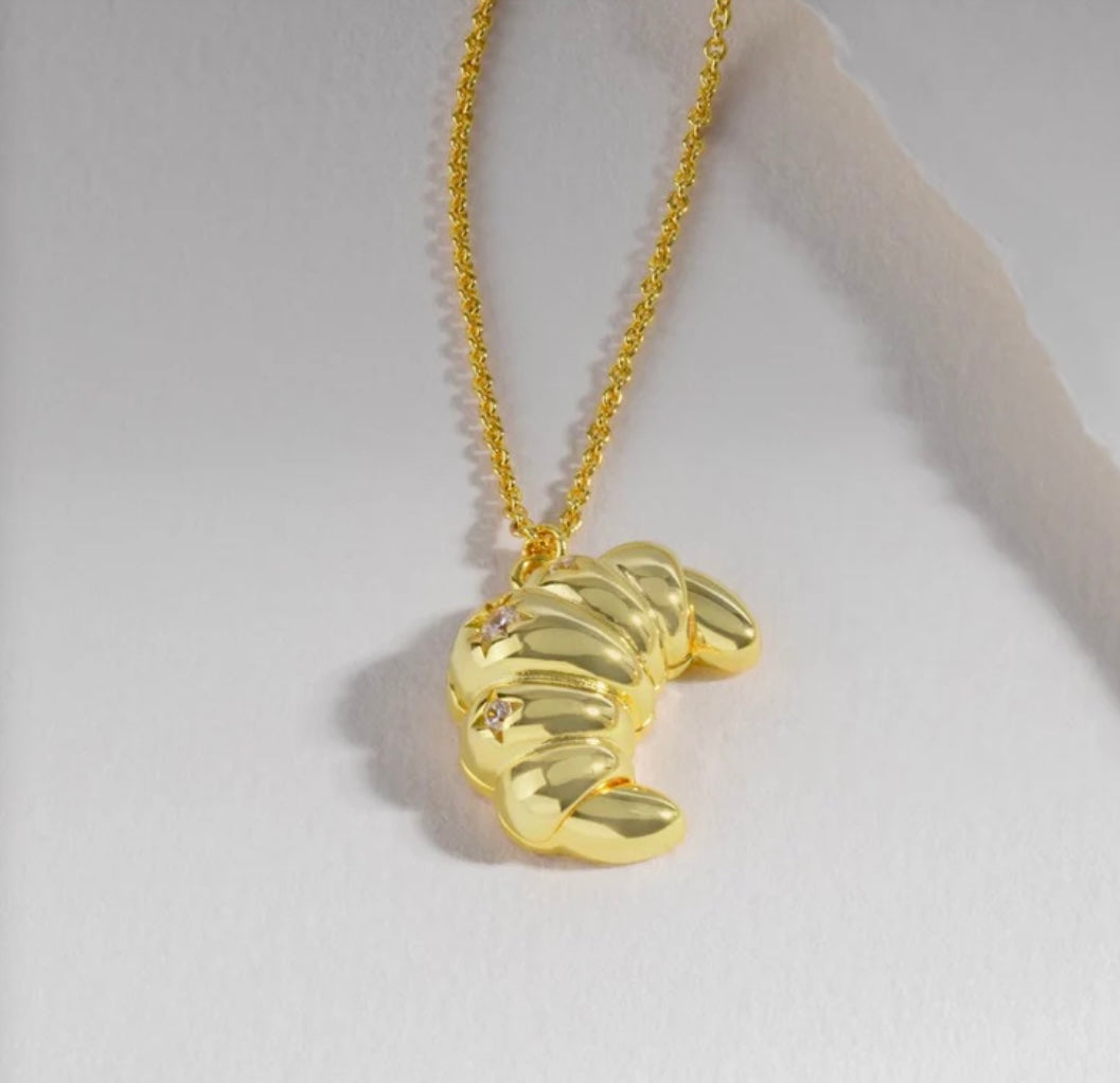 Don’t flake out on this piece. Indulge your inner pastry queen with our fun Croissant Gold Necklace. The bite-sized charm hangs on a delicate gold chain, with a locket that opens up to reveal the cheeky inscription “flaky” hidden within.